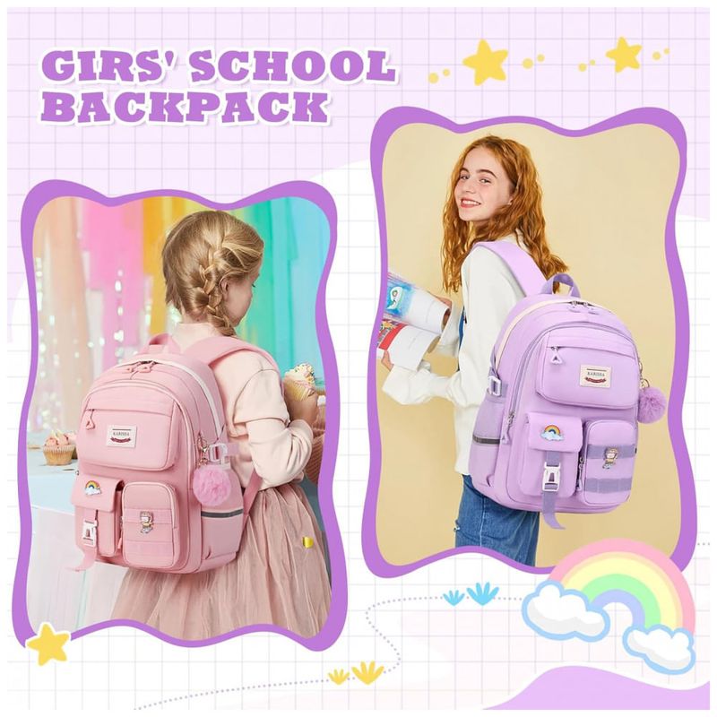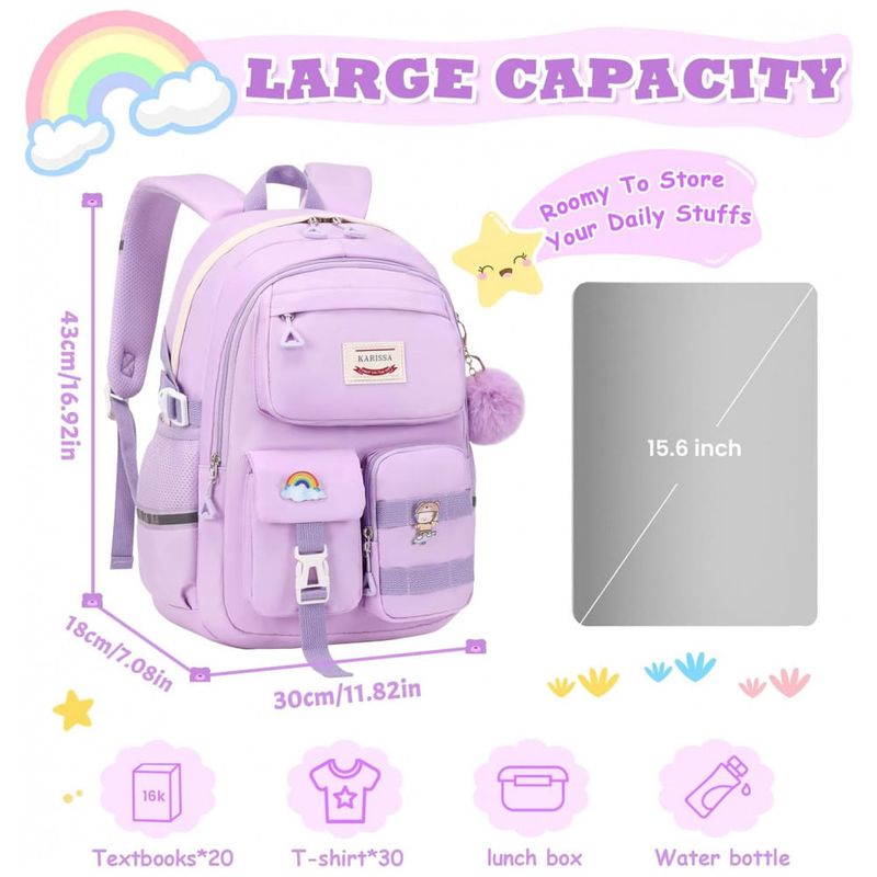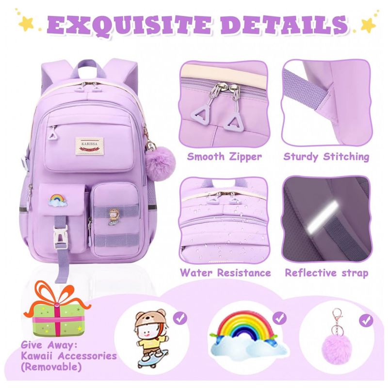 Modelo: Mochila escolar juvenil kawaii com múltiplos bolsos roxa