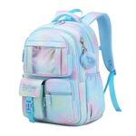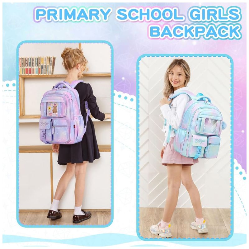 Modelo: Mochila escolar azul para meninas com múltiplos compartimentos