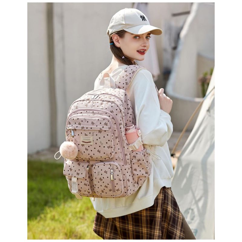 Conteúdo da caixa: 1 mochila QHRIDS corduroy rosa
