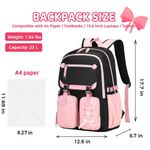 Mochila escolar TYHOTULY em poliéster resistente, indicada para crianças a partir de 4 anos, adolescentes e jovens em rotina escolar. A capacidade de 23 litros, distribuída em compartimento principal, bolsos frontais com zíper e bolsos laterais, permite acomodar fichários A4, livros, lancheira, estojo e garrafa de forma organizada.