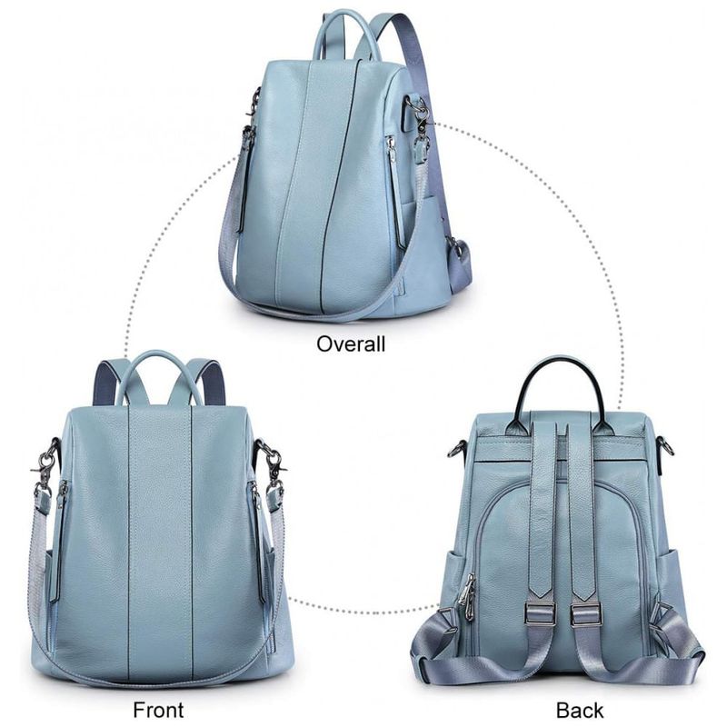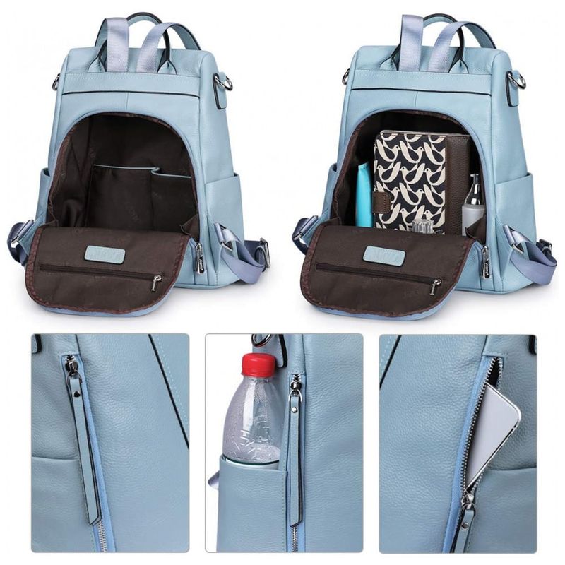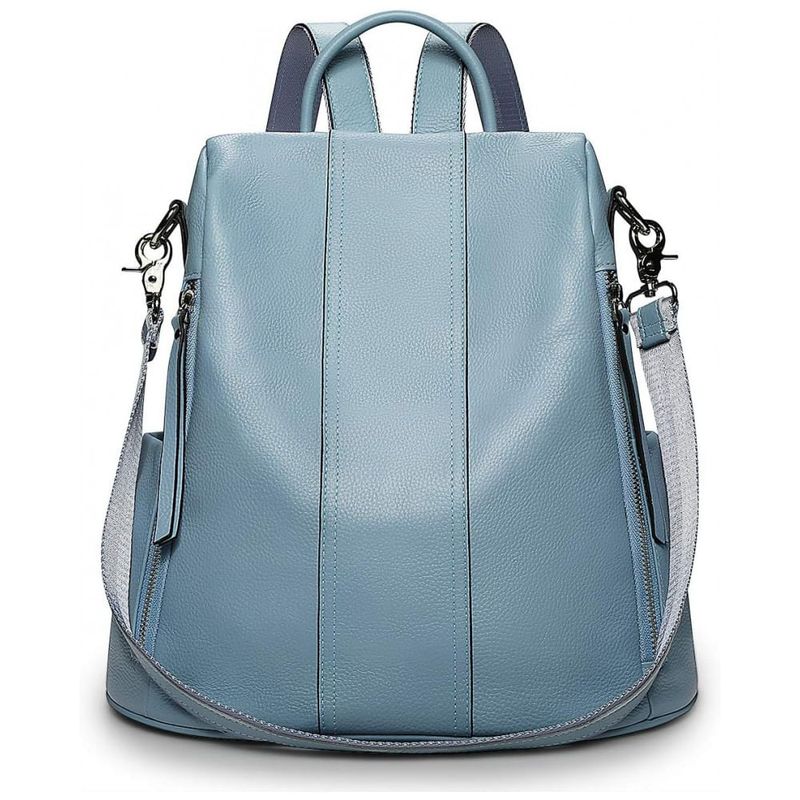 Mochila Feminina de Couro Conversível para Bolsa de Ombro, S ZONE, Azul Claro