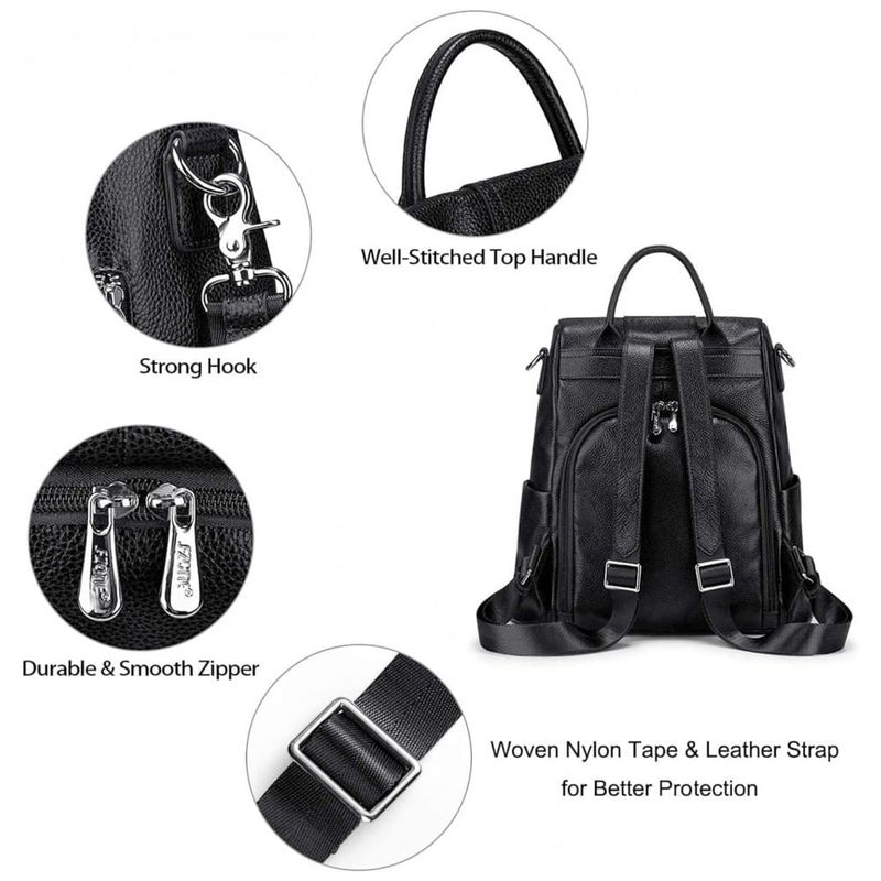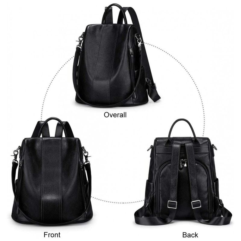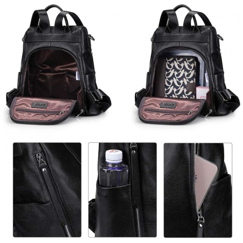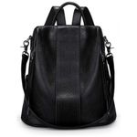 Mochila Feminina de Couro Conversível para Bolsa de Ombro, S ZONE, Preta