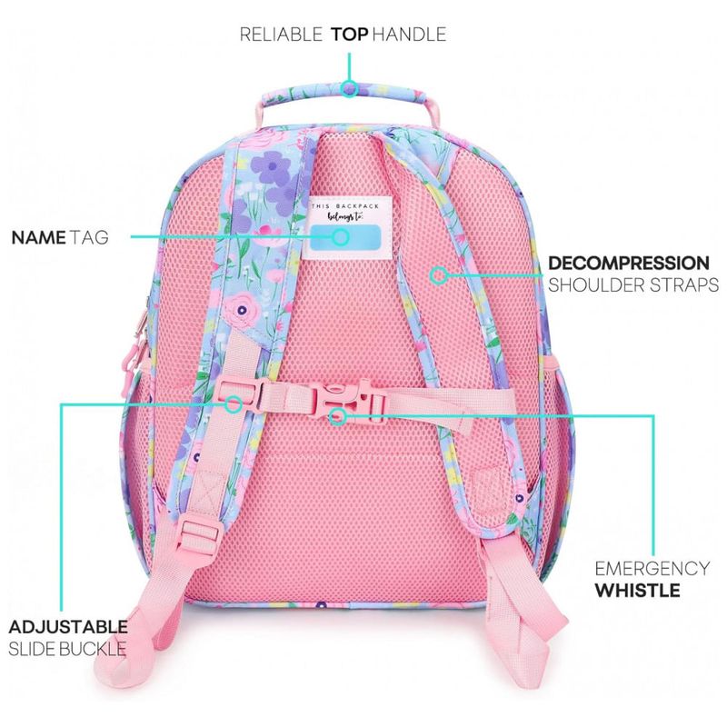 Conteúdo da embalagem: 1 mochila infantil floral azul clara mibasies 7L