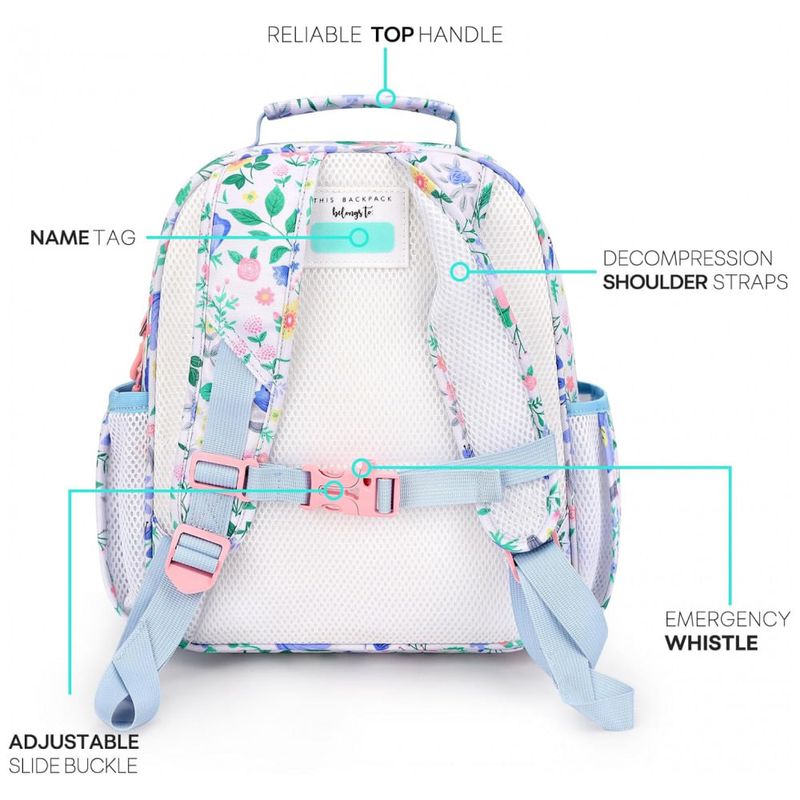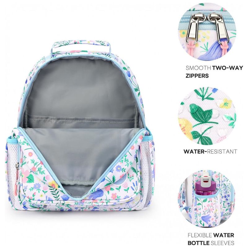 Conteúdo da embalagem: 1 mochila infantil floral azul mibasies 7L