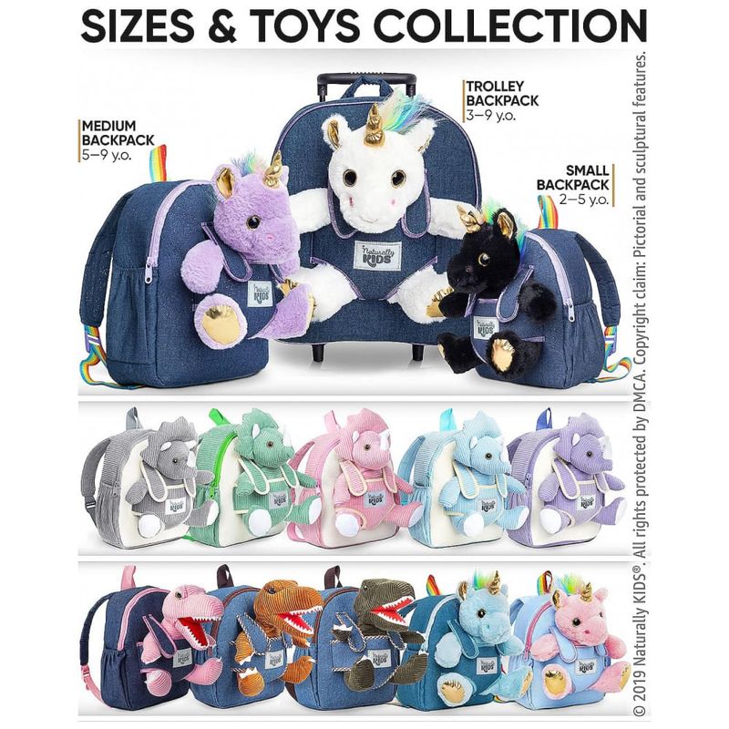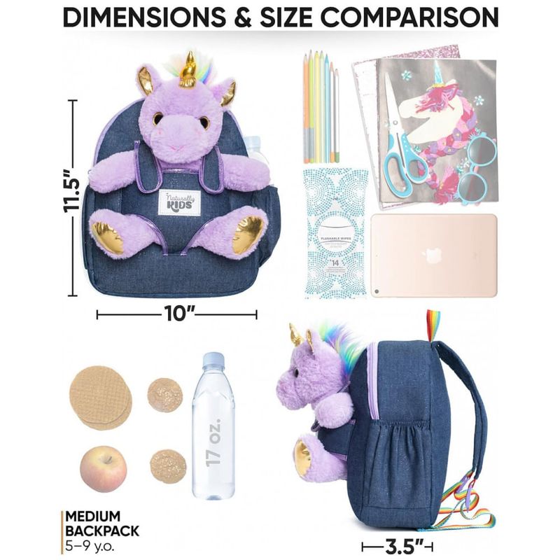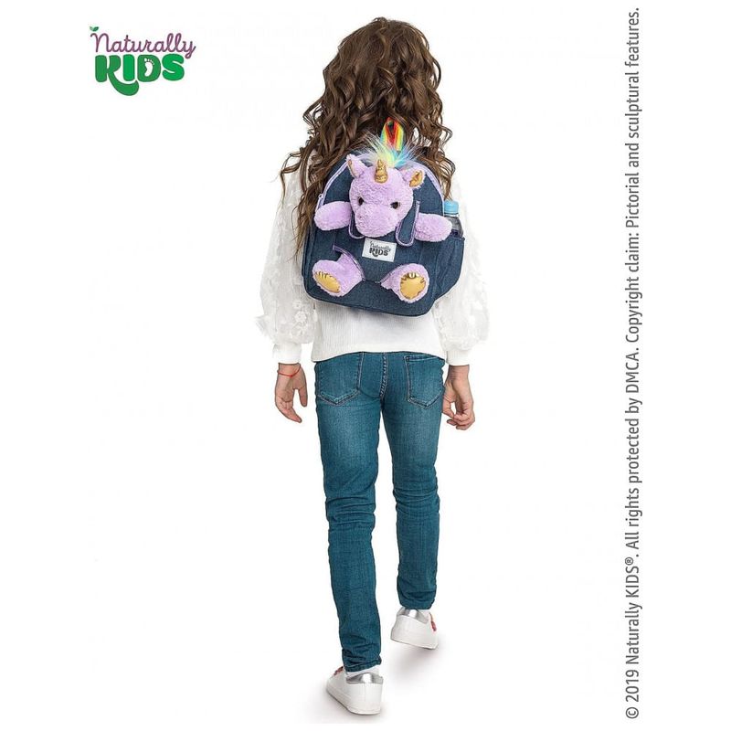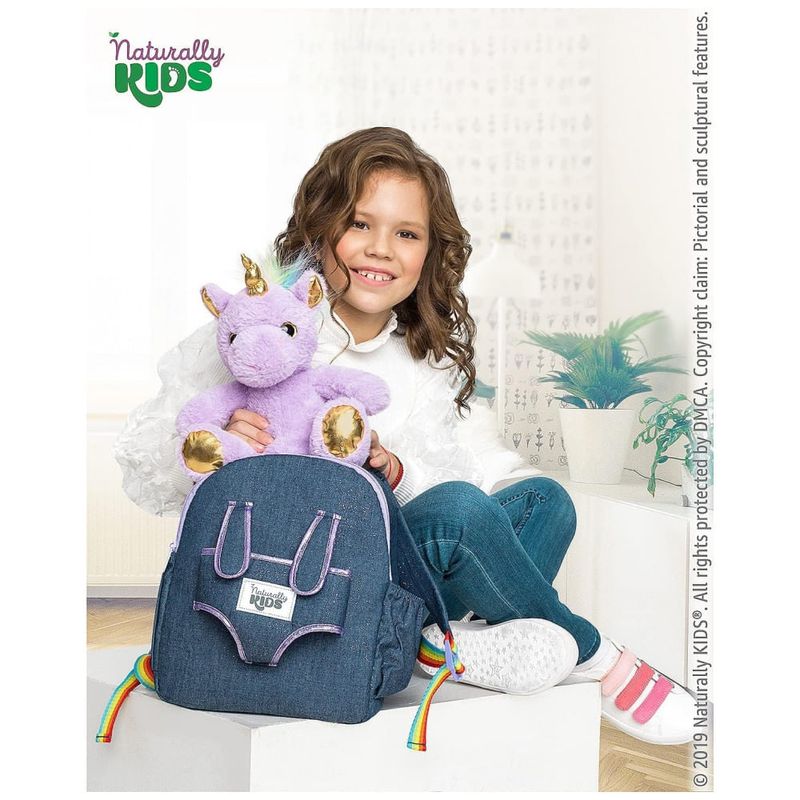 A mochila infantil média Naturally KIDS com unicórnio roxo foi desenvolvida para crianças em idade pré-escolar e primeiros anos escolares, com estrutura compacta adequada ao uso diário em escola, passeios e viagens curtas. O design frontal inclui um unicórnio de pelúcia roxo removível, que pode ser utilizado separadamente como brinquedo, mantendo o visual temático para crianças que gostam de unicórnios.