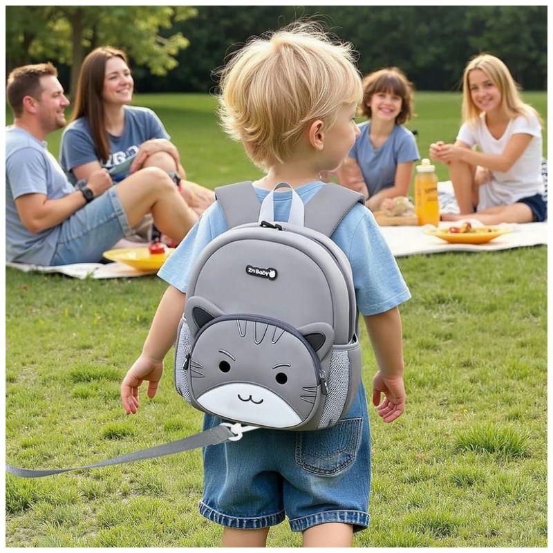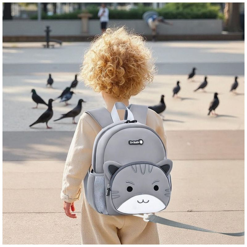 A mochila infantil Padgene em neoprene com personagem de gato 3D foi desenvolvida para crianças de 3 a 5 anos, combinando formato mini, material leve e impermeável para uso em pré-escola, passeios e pequenas viagens. O modelo inclui uma alça-guia destacável para segurança em locais movimentados, permitindo que a criança explore com mais liberdade enquanto permanece próxima ao responsável.