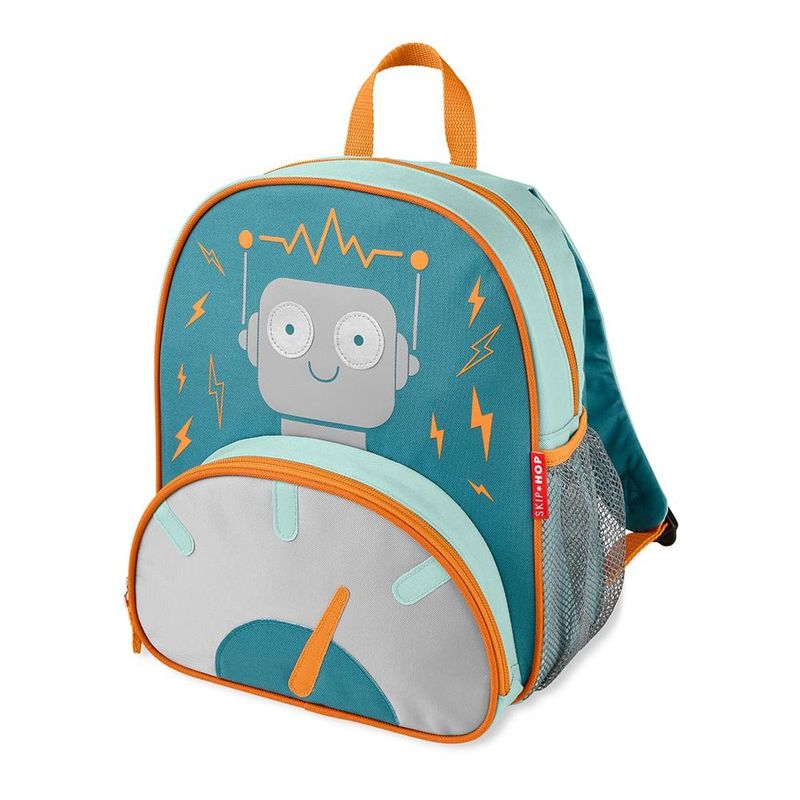 A Mochila Infantil Spark Style Robô da Skip Hop é ideal para passeios e pré-escola. Ela tem um compartimento principal espaçoso com um forro fácil de limpar e etiqueta de identificação interna. Guarde os lanches no bolso térmico frontal e coloque a caixinha de suco ou garrafa de canudo no bolso lateral de rede. Suas alças são acolchoadas e ajustáveis. Venha conhecer essa coleção e nossos personagens divertidos. ESPECIFICAÇÕES: