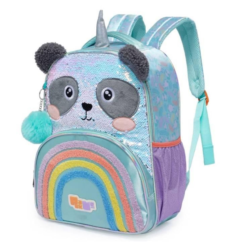 A mochila de costas Pack Me Sweet Panda é produzida em Poliéster e PVC Descolada e com material resistente Possui 1 bolso grande com um amplo espaço interno 1 bolso frontal para os demais objetos 2 bolsos laterais pequenos Alças acolchoadas e com regulagem.