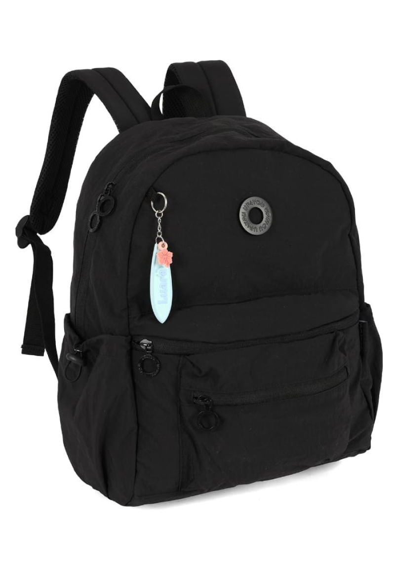 Entre seus diferenciais, destacam-se o chaveiro exclusivo Luara emborrachado em formato de prancha, o logo esmaltado em metal, o zíper personalizado e asalças de costas com espuma, que garantem mais conforto durante o uso prolongado. O material crinkle proporciona toque suave, aparência moderna e maior resistência ao uso diário.