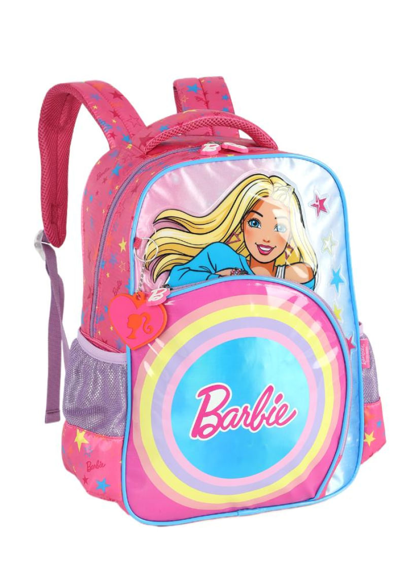 A Mochila Infantil Barbie Up4you modelo IS42641BB foi desenvolvida para encantar com estilo, praticidade e o toque fashion da Barbie. Com design moderno e acabamento em náilon texturizado, a peça traduz toda a alegria e personalidade do universo da marca, ideal para acompanhar o dia a dia escolar com charme.Com dimensões de 41 x 30 x 15 cm e capacidade aproximada de 18 litros, é classificada como mochila média infantil, oferecendo espaço ideal para transportar livros, cadernos, estojos e acessórios escolares de forma prática e organizada.Entre seus diferenciais, destacam-se o chaveiro personalizado da Barbie, o logo em PVC em alto relevo e texturizado, os dois bolsos frontais com zíper, o bolso lateral livre e o zíper personalizado, que completam o visual com estilo e funcionalidade.Confeccionada em náilon resistente, é uma mochila leve, durável e confortável para o uso diário.Material: náilon resistente texturizado Classificação: mochila média infantil Polegadas: 16"Dicas de uso: ideal para escola, passeios e atividades extracurriculares, unindo organização, conforto e o charme da Barbie.Dicas de limpeza: limpar com pano macio levemente umedecido em água e sabão neutro. Evite imersão em água e produtos químicos agressivos, para preservar o acabamento e o brilho do material.