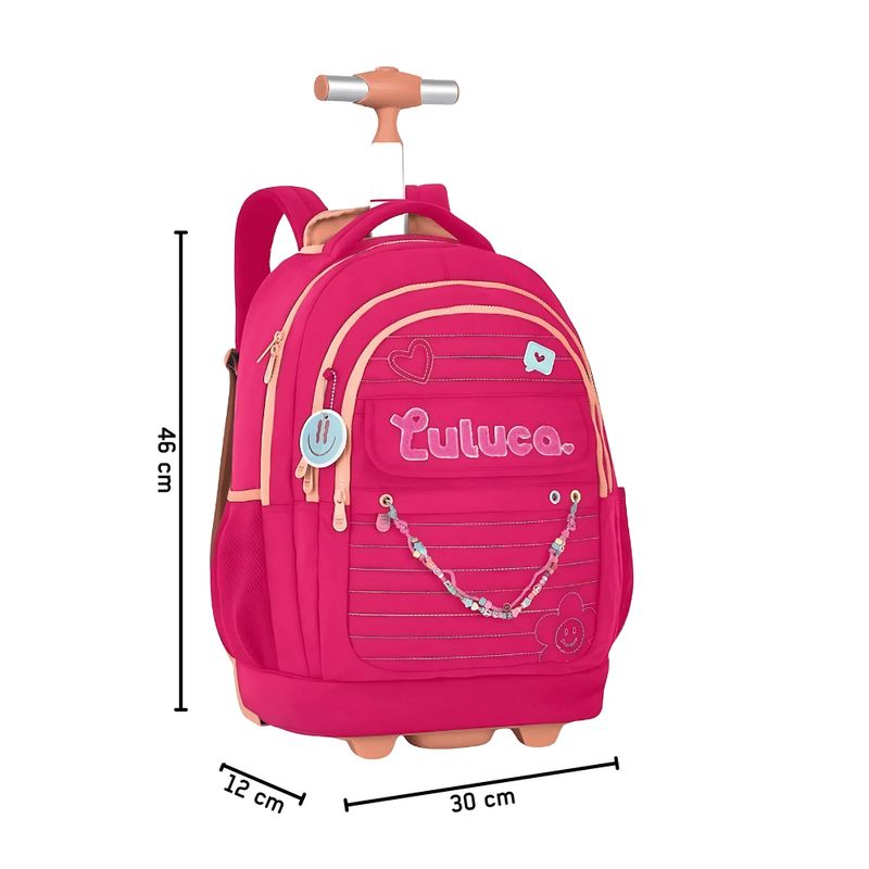 A Mochila de Rodas Luluca Juvenil da Clio Style é a escolha perfeita para meninas que amam estilo e praticidade. Inspirada na Luluca, essa mochila combina funcionalidade e um design super fashion com detalhes modernos. Com amplo espaço interno, acomoda livros e materiais escolares, e seu sistema de rodinhas e alça retrátil garantem conforto no transporte. Fabricada com materiais resistentes, possui bolsos externos para organização e é ideal para a escola, viagens e passeios.