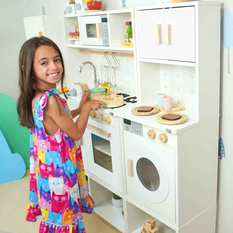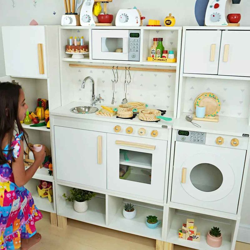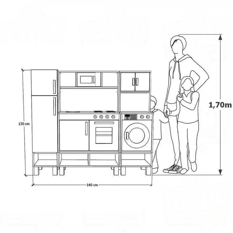 KIT EDUCATIVO COZINHA INFANTIL COM GELADEIRA, MÁQUINA DE LAVAR E MÓDULO CRESCER Com o nosso Kit Educativo Cozinha Infantil com Geladeira,Máquina de Lavar e Módulo Crescer os pequenos ganham +30 cm de altura para brincar com mais ergonomia, autonomia e conforto, enquanto transformam cada momento em aprendizado e imaginação com os 4 livrinhos da Turma da Eita. Produzido em MDF 15mm, assegura durabilidade, segurança e fácil instalação, mantendo o design original e garantindo uma experiência divertida que se transforma em memórias afetivas inesquecíveis. Os livros educativos exclusivos da Turma da Eita trazem histórias divertidas e jogos dinâmicos, que estimulam o aprendizado e a criatividade. Além da leitura, o livro acompanha peças e acessórios essenciais para a interação com a obra, permitindo que a criança aprenda na prática enquanto monta e brinca. Com o método exclusivo EitaMontei — desenvolvido especialmente para a educação infantil — a montagem se torna simples, rápida e cheia de significado, unindo família, diversão e desenvolvimento. O kit contém: Livro Turma da Eita e A Cozinha Perfeita vol.1 Livro Turma da Eita e A Cozinha Perfeita vol.2 Livro Turma da Eita e A Cozinha Perfeita vol.3 Livro Turma da Eita em Uma Missão Congelante Livro Turma da Eita em Meu Primeiro Móvel Vol.1 Livro Turma da Eita em Meu Primeiro Móvel Vol.2 Livro Turma da Eita em Uma Missão Congelante Livro Turma da Eita em Meu Primeiro Móvel Vol.1 Livro Turma da Eita em Meu Primeiro Móvel Vol.2 +Peças indispensáveis para interação com a obra. CARACTERÍSTICAS E FUNCIONALIDADES MATERIAL RESISTENTE: Fabricado em MDF 15mm, o mesmo utilizado em móveis planejados. DESIGN LÚDICO E REALISTA: Cozinha e geladeira com detalhes que imitam a vida real, tornando o faz de conta ainda mais divertido. LIVROS EDUCATIVOS: Histórias que incentivam a leitura, a criatividade e o vínculo familiar. FÁCIL MONTAGEM: Método EitaMontei pensado para ser um momento divertido em família, utilizando apenas uma chave PHILLIPS. DESENVOLVIMENTO INFANTIL: Estimula coordenação motora fina, noções de organização, criatividade e trabalho em equipe. DIMENSÕES: • Cozinha Infantil (com Módulo Crescer): Altura 130 cm | Largura 72 cm | Profundidade 30 cm