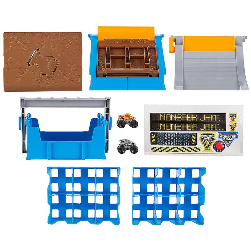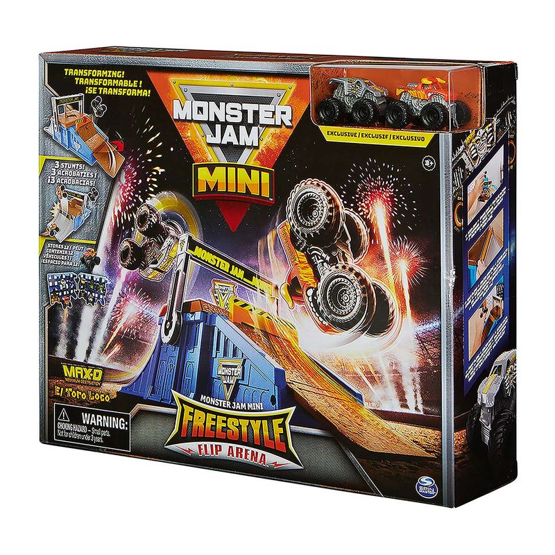 Conteúdo da embalagem: 3 Acrobácias, 2 Mini Veículos Monster Jam e Acessórios