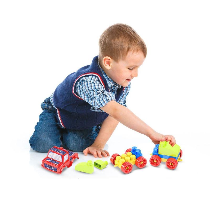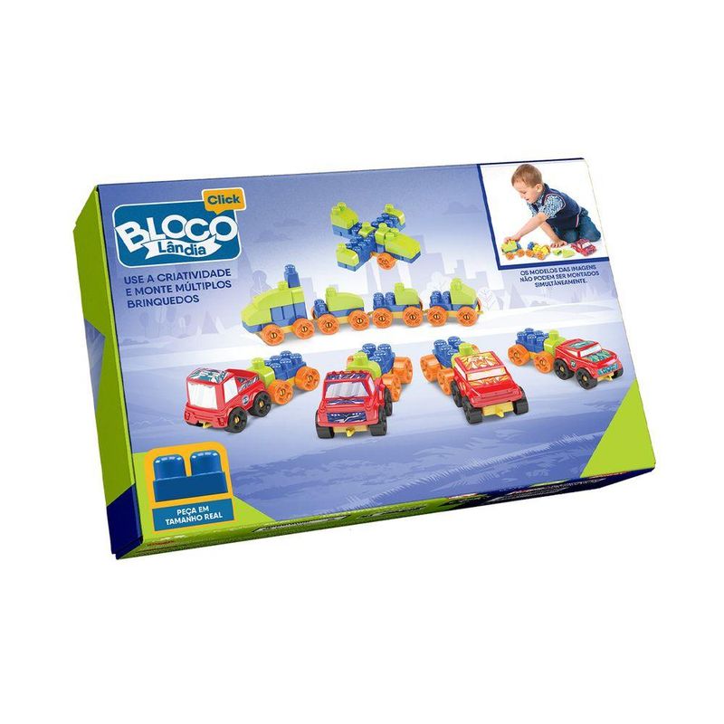 Marca: Dismat;Nome do produto: Monta Máquinas Blocolândia Click 68 Peças;Idade recomendada: A partir de 3 anos;Selo Inmetro: Em certificação;Contém: 68 peças.