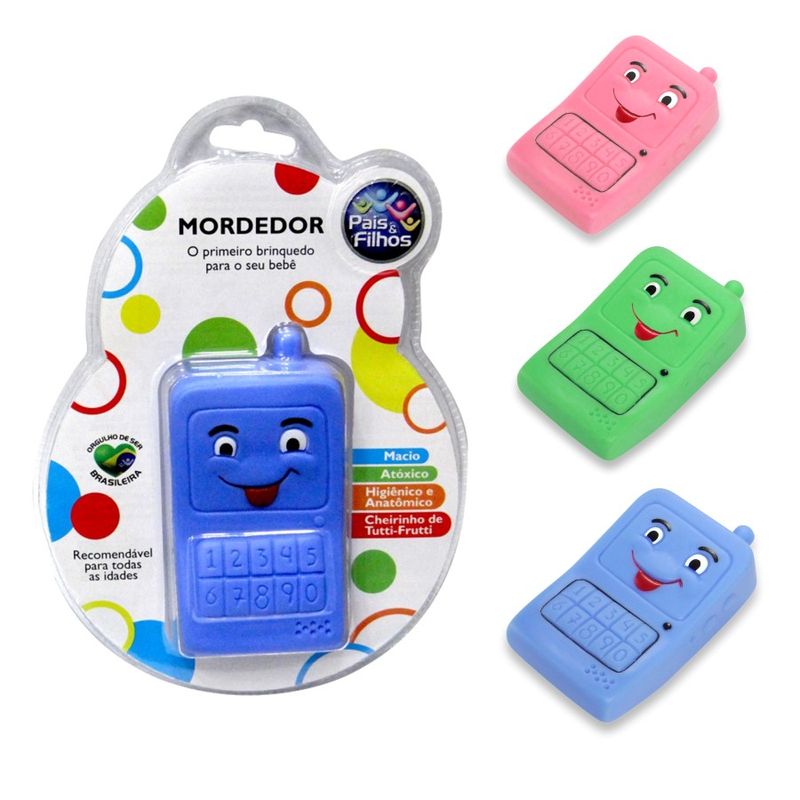 Mordedor Celular, o primeiro brinquedo para o seu bebê! Feito de vinil um matérial macio, atóxico, higiênico e anatômico, com cheirinho de tutti-frutti.