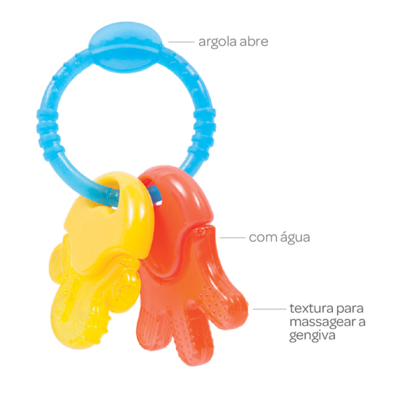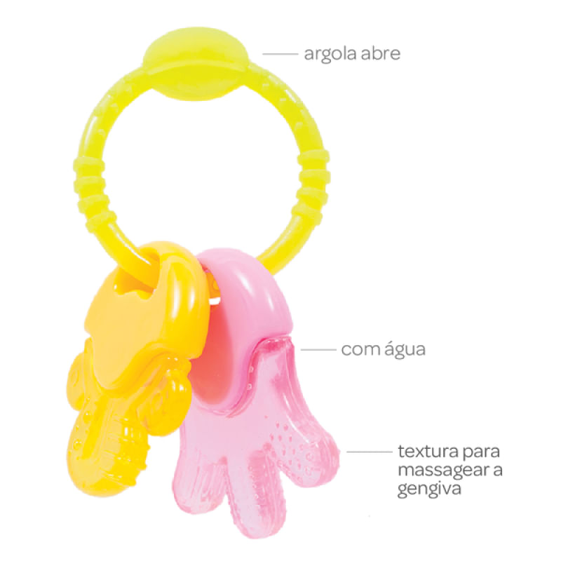 Os bebês vão amar o Mordedor Chaveirinho Com Água da Buba! Com desing divertido, formas e textura macia, é ideal para aliviar o desconforto causado pelo nascimento dos primeiros dentinhos. Além disso, possui formato perfeito para o pequeno segurar e morder.
