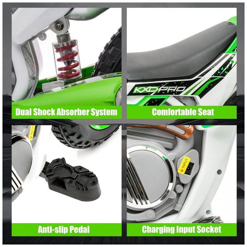 Passeio de motocicleta infantil de material superior Feito de material PP adequado para crianças e atende aos padrões de segurança federais dos EUA para ASTM e CPSIA, o passeio de motocicleta não é prejudicial à saúde de seus filhos.