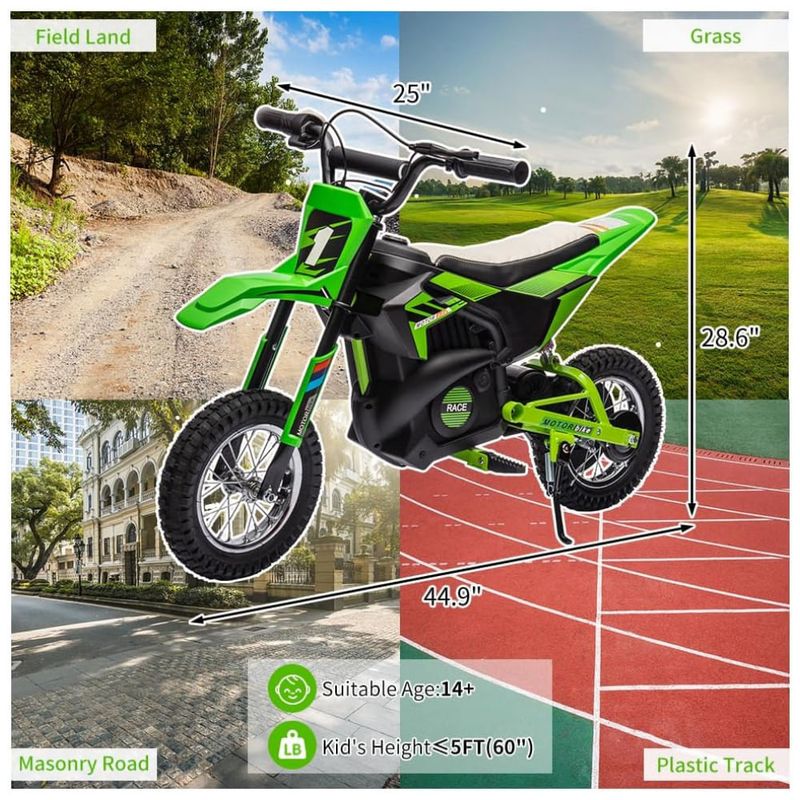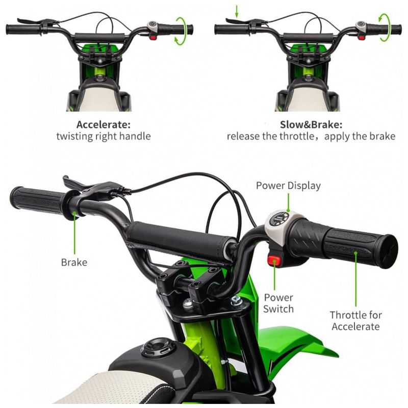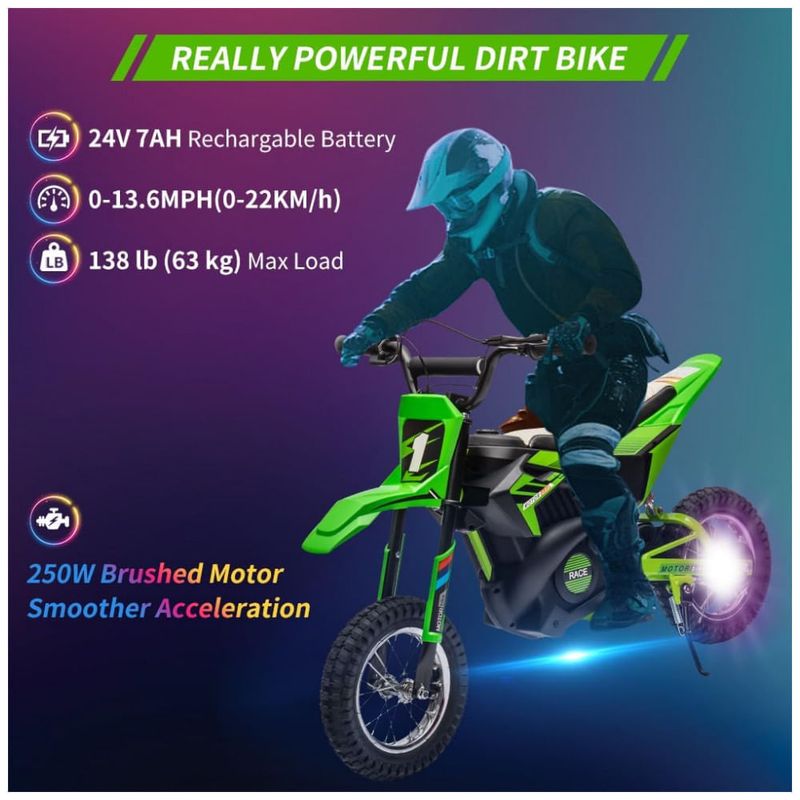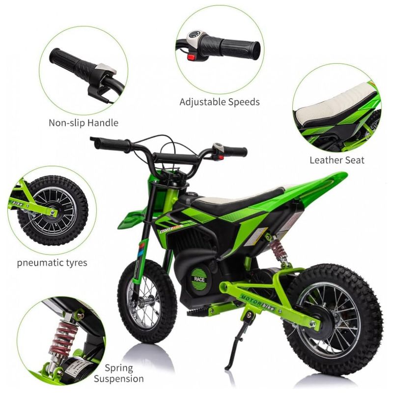 Este Motocross Elétrico proporciona uma experiência de condução emocionante e segura para jovens entre 8 e 12 anos. Com um motor escovado de 250W, bateria recarregável e design off road, é a escolha perfeita para explorar terrenos variados.