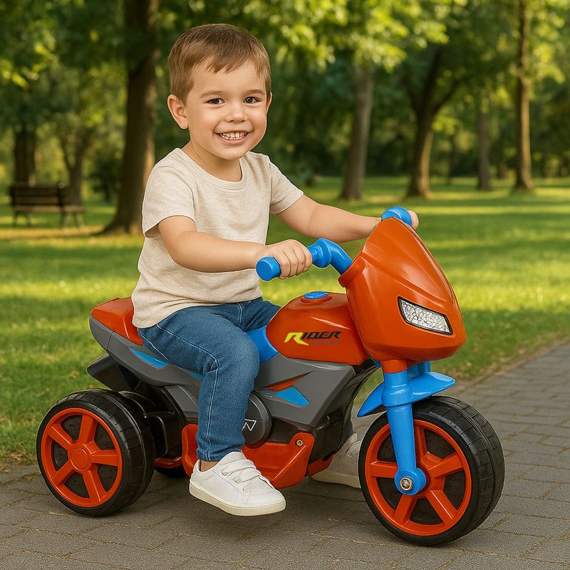 A Moto Rider Elétrica Azul e Vermelho Infantil 6V da Usual é a escolha perfeita para crianças que adoram aventura sobre rodas! Com visual esportivo e vibrante nas cores azul e vermelho, ela funciona com bateria recarregável de 6V e é indicada para crianças de até 25kg. Possui botão de aceleração, rodas reforçadas e apoio para os pés, garantindo segurança e conforto durante a pilotagem. Ideal para estimular o equilíbrio, a coordenação motora e proporcionar momentos de pura diversão ao ar livre com estilo e autonomia!