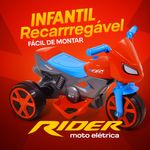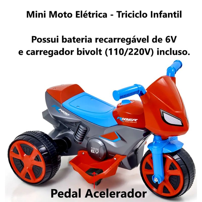 BABYMINI VEÍCULOSMINI VEÍCULOS ELÉTRICOSMoto Elétrica Recarregável Bivolt Acelera no Pedal Até 25kg Vermelha e Azul Aranha
