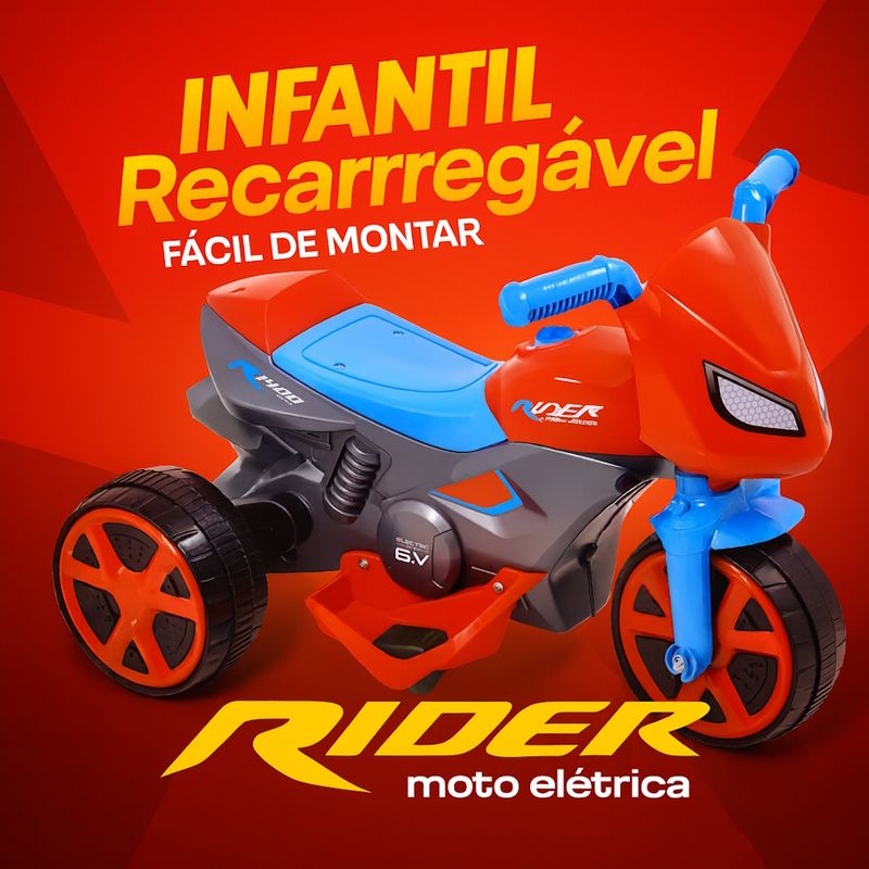 Moto Elétrica Recarregável Bivolt Acelera no Pedal Até 25kg Vermelha e Azul Aranha