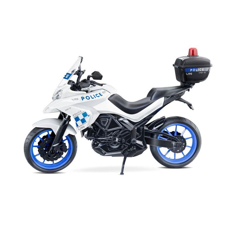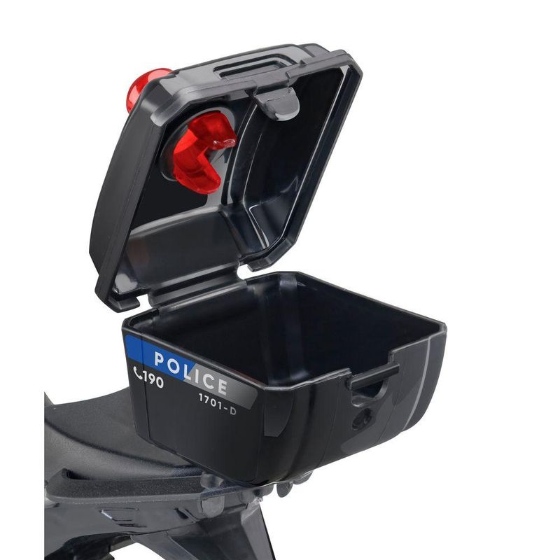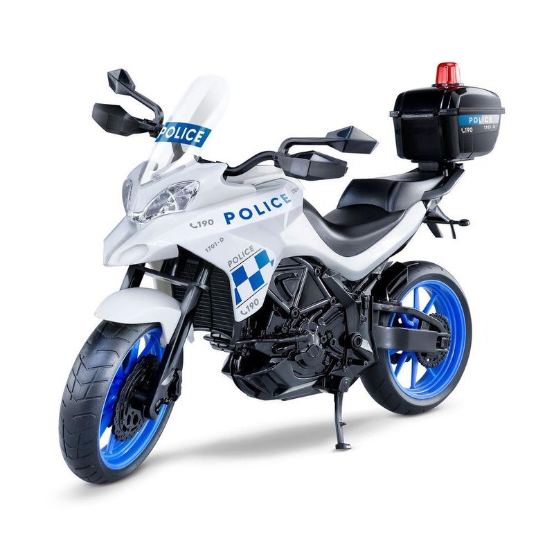 Diferenciais:Design realista de uma moto de polícia.Baú de armazenamento que abre.Cores vibrantes e acabamento de alta qualidade.Construída com materiais resistentes e duráveis.