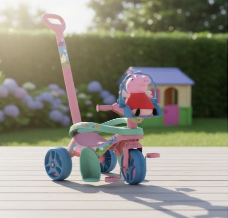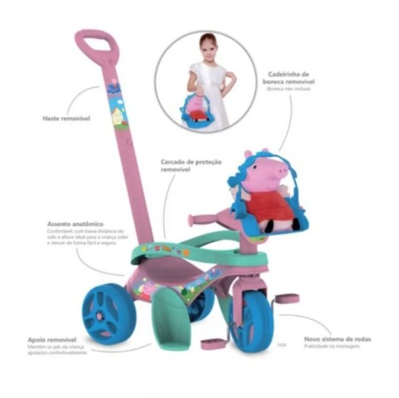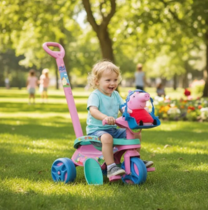 O Triciclo Mototico Peppa Pig Passeio E Pedal Bandeirante proporciona diversão para as crianças.