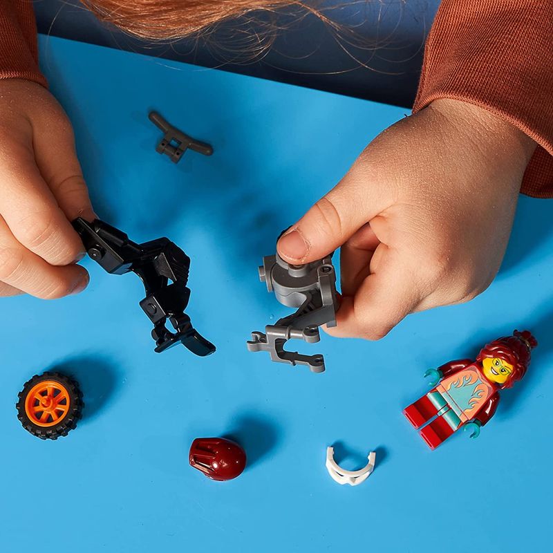 Inclui motocicleta com roda de inércia e uma minifigura da série de TV LEGO City – Freya McCloud.