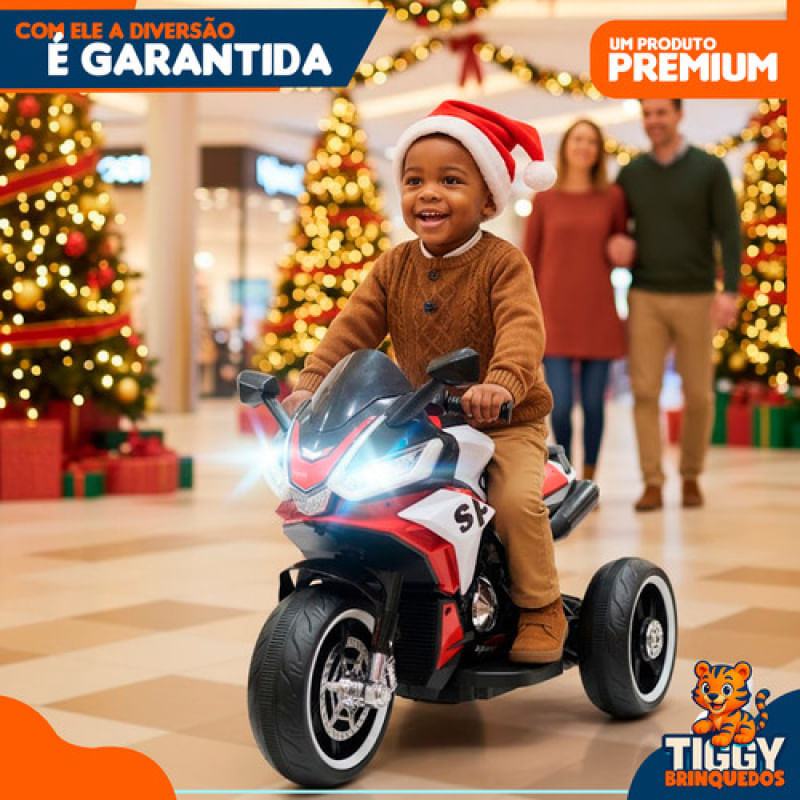 CONTEÚDO DA EMBALAGEM: 1x MOTOCICLETA ELETRICA 3 RODAS E CARREGADOR FUNCIONALIDADES DO PRODUTO: BOTÃO LIGA/DESLIGA COM BUZINHA, LUZ, MÚSICA, FUNÇÃO MP3/USB, FUNÇÃO BLUETOOTH, PRA FRENTE E PARA ATRÁS, INDICADOR DE BATERIA, PESO SUPORTADO 30 KG IDADE RECOMENDADA: INDICADO PARA CRIANÇAS MAIORES DE 6 ANOS MEDIDAS DO PRODUTO EM CM (AxLxC): 64cm x 51cm x 95cm MEDIDAS DA EMBALAGEM EM CM (AxLxC): 50cm x 60cm x 105cm CERTIFICADO: 00952/22-1 REGISTRO INMETRO: 005082/2022