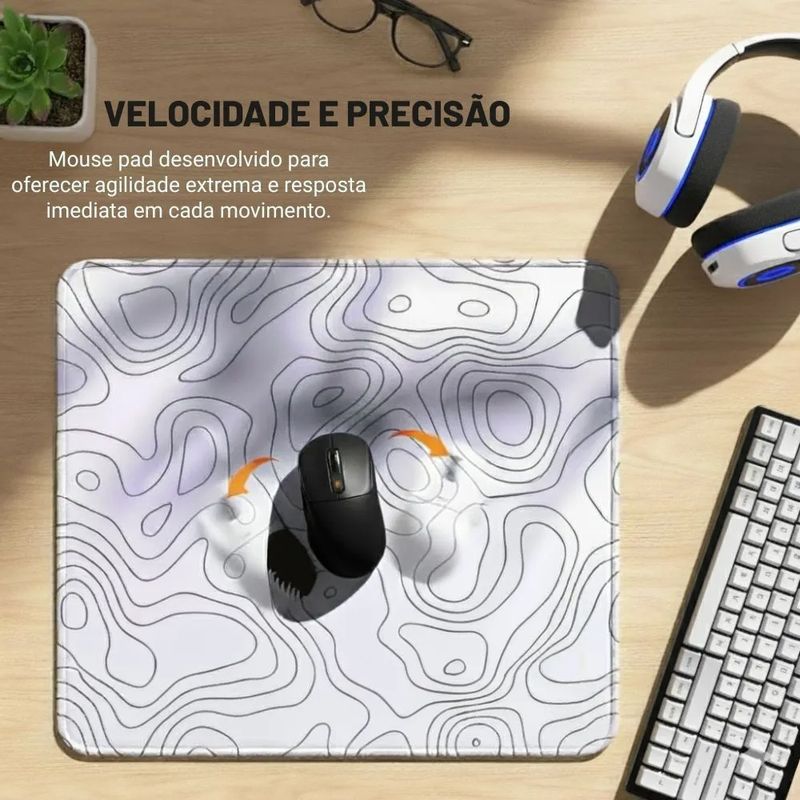 Possui dimensões amplas de 450x400mm e espessura ultrafina de 4mm, oferecendo conforto e estabilidade durante longas sessões. Sua base emborrachada antiderrapante garante aderência firme à mesa, evitando deslizamentos indesejados.