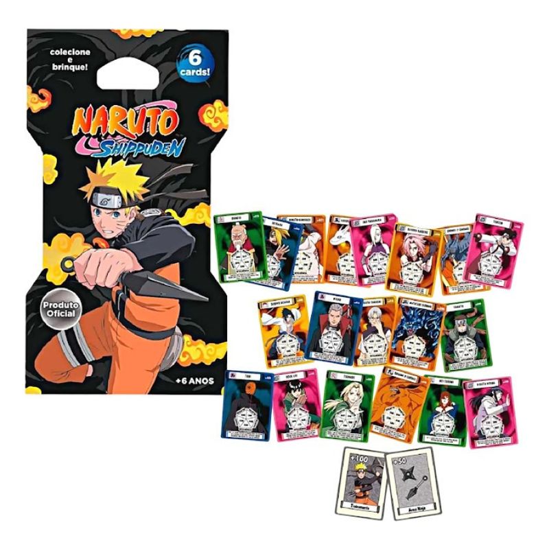 DESCRIÇÃO DO PRODUTORank Cards Colecionáveis Naruto Shippuden Cards Games Colecionáveis, com os personagens do anime Naruto Shippuden! Colecione, troque, monte seu baralho personalizado. Você pode usar os Cards no Jogo Rank Ninja Naruto Shippuden, para deixar o jogo mais emocionante. Em cada envelope acompanha 6 cards.CARACTERÍSTICAS TÉCNICASConteúdo da Embalagem: 06 Cards ColecionáveisDimensões Aproximadas do produto: 10cm x 8cm x 1mm (Altura x Largura x Comprimento/Profundidade)Dimensões Aproximadas da Embalagem: 17cm x 10cm x 3mm (Altura x Largura x Comprimento/Profundidade)Material/Composição: CartãoMarca: ElkaReferência: 1209Outras informações: As cores podem variar entre as imagens mostradas acima e o produto. Imagens meramente ilustrativas.