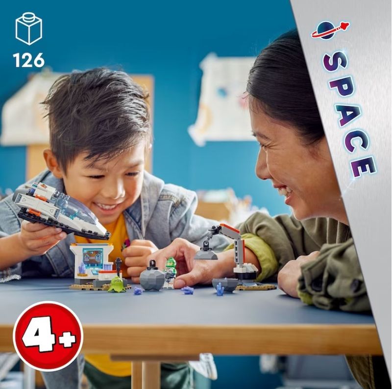 Conjunto de brinquedo nave espacial LEGO® City para crianças a partir de 4 anos • Uma nave espacial de brinquedo, guindaste, laboratório, meteorito, 2 minifiguras e uma figura alienígena • As crianças podem usar o guindaste para levantar o meteorito contendo cristais de energia de brinquedo • Inclui material digital impresso e interativo instruções de construção • Dê este conjunto como um presente para meninos e meninas a partir de 4 anos • As crianças expandem a brincadeira com outros conjuntos (vendidos separadamente) da linha LEGO® City • LEGO® City é um lugar onde as crianças podem definir seus imaginação ilimitada livre • A nave espacial neste conjunto de brinquedo de 126 peças mede mais de 14 cm de comprimento