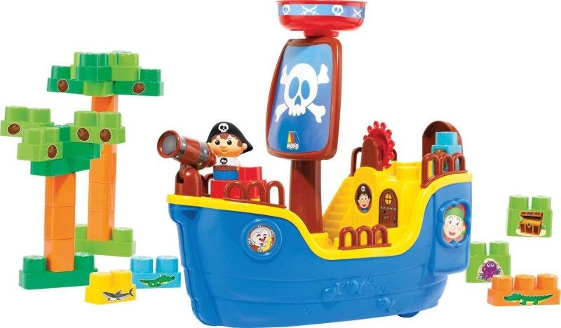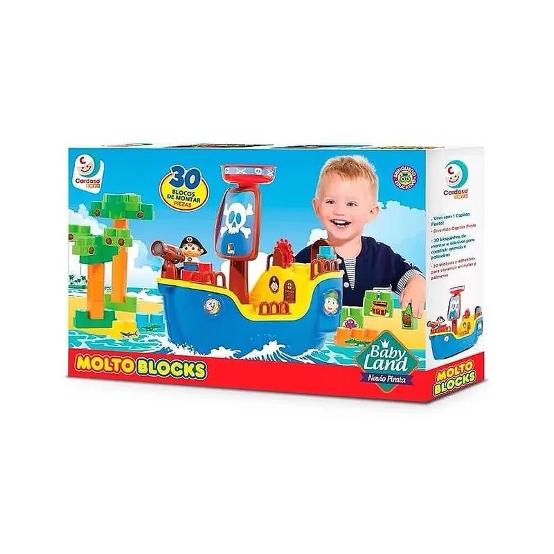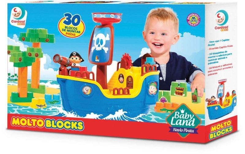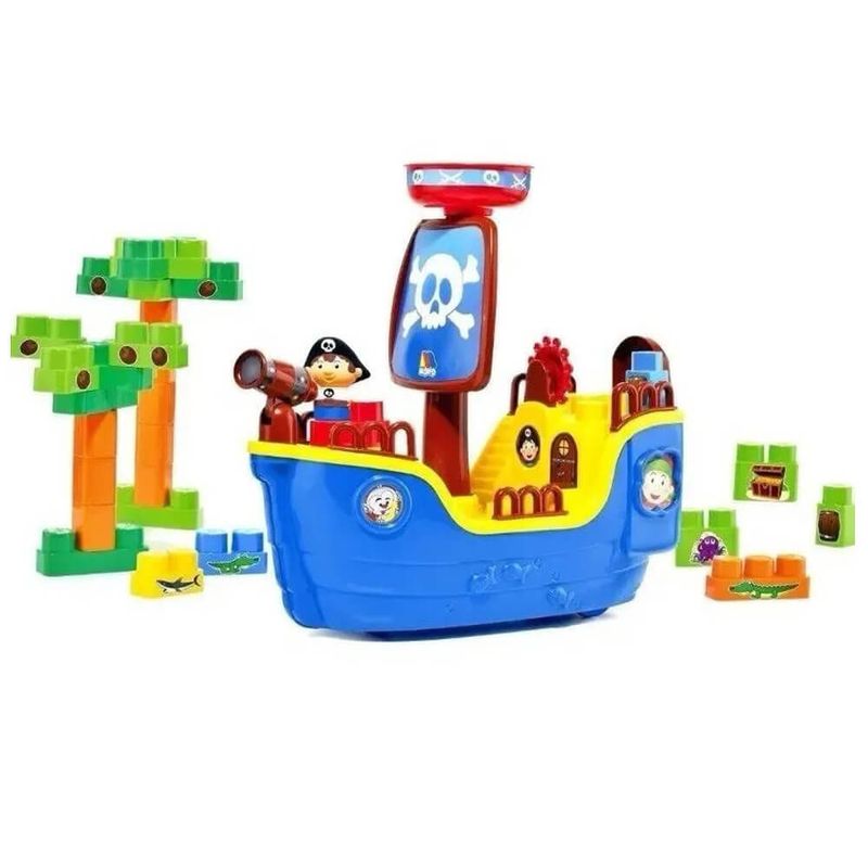 - Contém: 1 Barco , 1 boneco pirata, 30 Blocos de montar e 1 cartela de adesivos