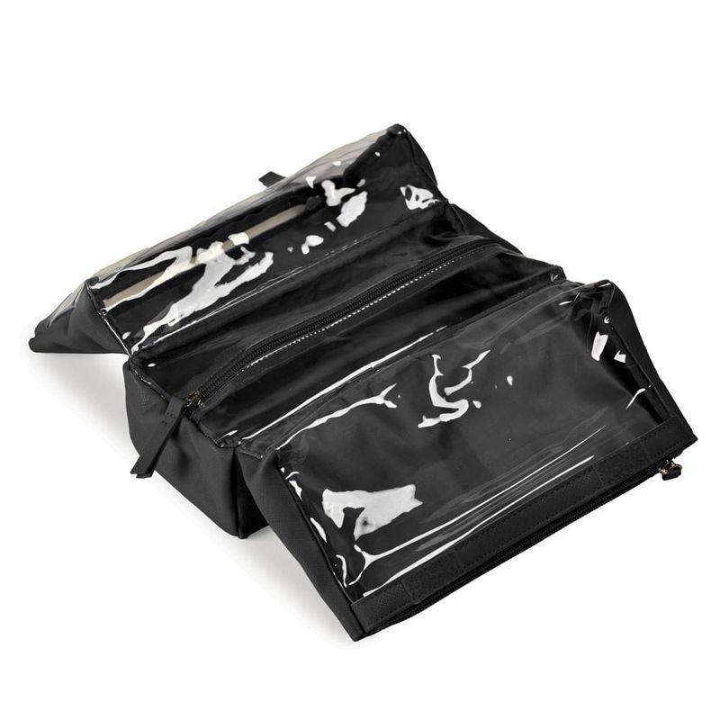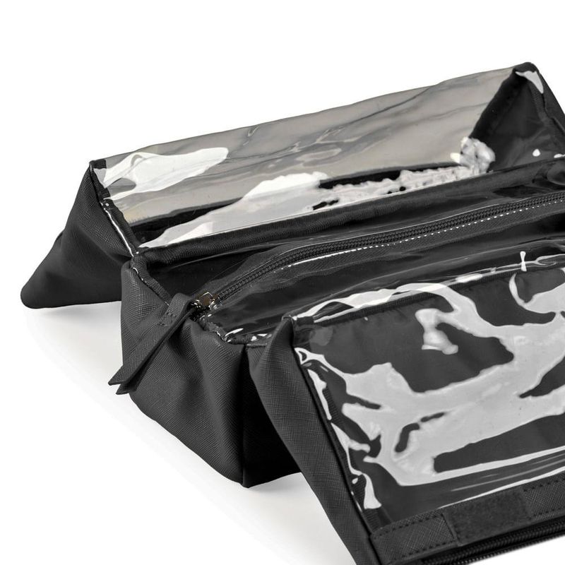 A Nécessaire Grande Recortes oferece espaço e sofisticação em um único acessório. Com três compartimentos amplos e acabamento em PVC transparente, ela facilita a organização de itens de beleza e higiene pessoal, sendo perfeita para viagens e ocasiões especiais.