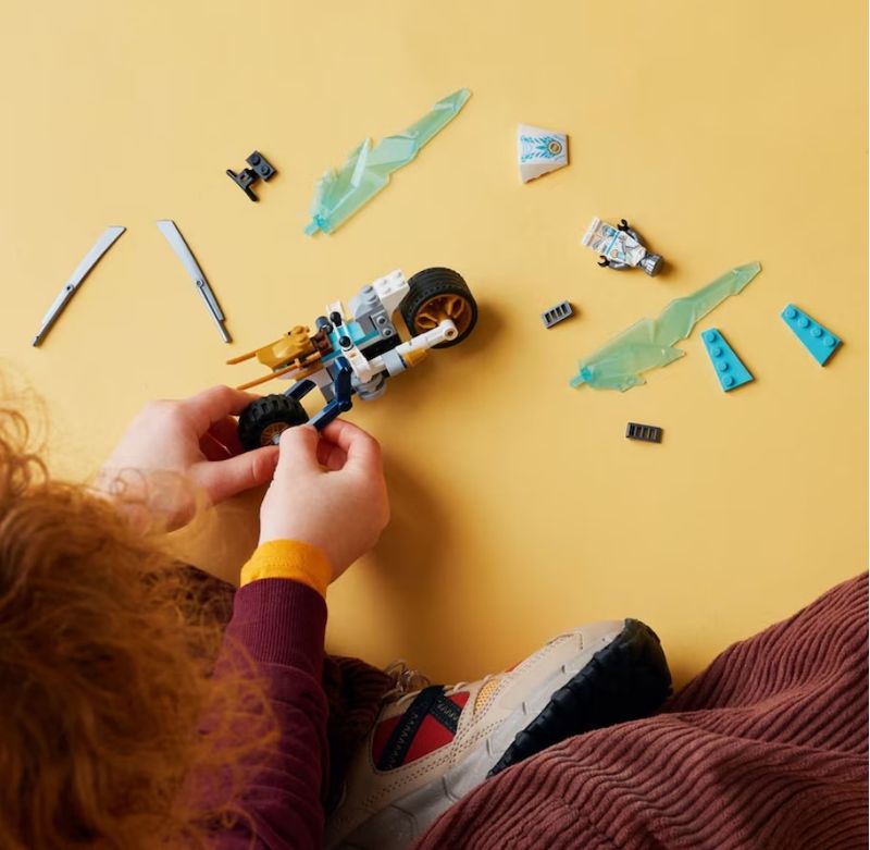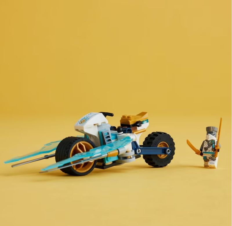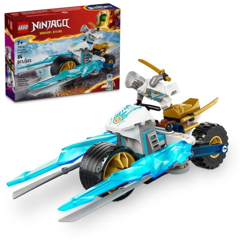 Brinquedo de motocicleta ninja para crianças – Meninos e meninas de 7 anos ou mais podem encenar a ação em ritmo acelerado da 2ª temporada do programa de TV NINJAGO Dragons Rising com o brinquedo de motocicleta de gelo de Zane • Motocicleta NINJAGO repleta de recursos – A motocicleta de brinquedo tem rodas móveis, lâminas douradas e suspensão no pneu traseiro • Brinquedo ninja interativo – Os fãs de ninja podem pressionar o pneu traseiro da motocicleta para desdobrar as lâminas de gelo em ambos os lados e alternar a moto para o modo de ataque • 1 minifigura NINJAGO – Zane está vestido com sua armadura de torneio nunca antes vista e segura 2 acessórios de espada katana para inúmeras horas de ação de dramatização • Presente NINJAGO para crianças – Este brinquedo de ação oferece uma experiência divertida de construir e brincar e é uma pequena ideia de presente para meninos e meninas de 7 anos ou mais que amam a brincadeira ninja • Um universo de brinquedos ninja – Os conjuntos LEGO® NINJAGO® incluem dragões, veículos e templos e permitem que as crianças escapem para um mundo de fantasia de aventura com seus heróis • Medidas – Este LEGO de 84 peças O conjunto NINJAGO inclui um brinquedo de motocicleta infantil medindo mais de 6 cm de altura, 18 cm de comprimento e 6 cm de largura