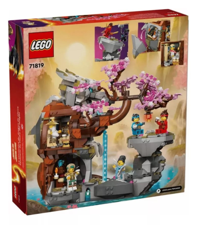 O set ninja inclui um dragão de pedra, área de treino que pode ser movida enquanto as personagens combatem, uma cascata, uma cerejeira, uma biblioteca com pergaminhos, livros e conjunto de chá e uma divisão secreta que se revela ao empurrar os livros.