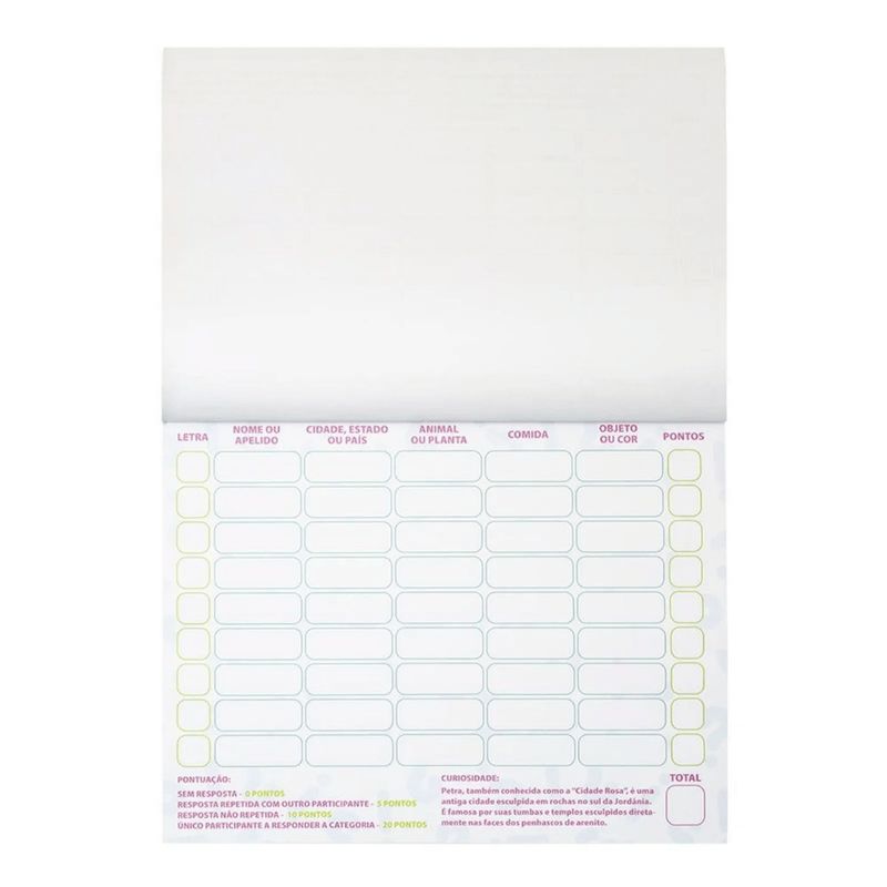 Desafie sua mente e divirta-se com O Grande Livro do Stop da Todolivro! Um jogo clássico que vai testar seus conhecimentos, sua agilidade mental e sua rapidez de raciocínio. O objetivo é simples: uma letra é sorteada e os participantes devem preencher as categorias com palavras que comecem com essa letra. Quem completar tudo primeiro grita “STOP!” e soma pontos! Ideal para jogar com amigos e família, garantindo momentos de diversão, aprendizado e muita competição saudável. Prepare-se para provar quem é o mais rápido e criativo!