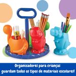 Desenvolvido pensando nas crianças, o organizador inclui 4 copos de plástico removíveis que são ideais para armazenar suprimentos diversos, como tesouras, lápis de cor, giz de cera e muito mais. Os dinossauros simpáticos ajudam a tornar a limpeza uma brincadeira, incentivando a organização com diversão.
