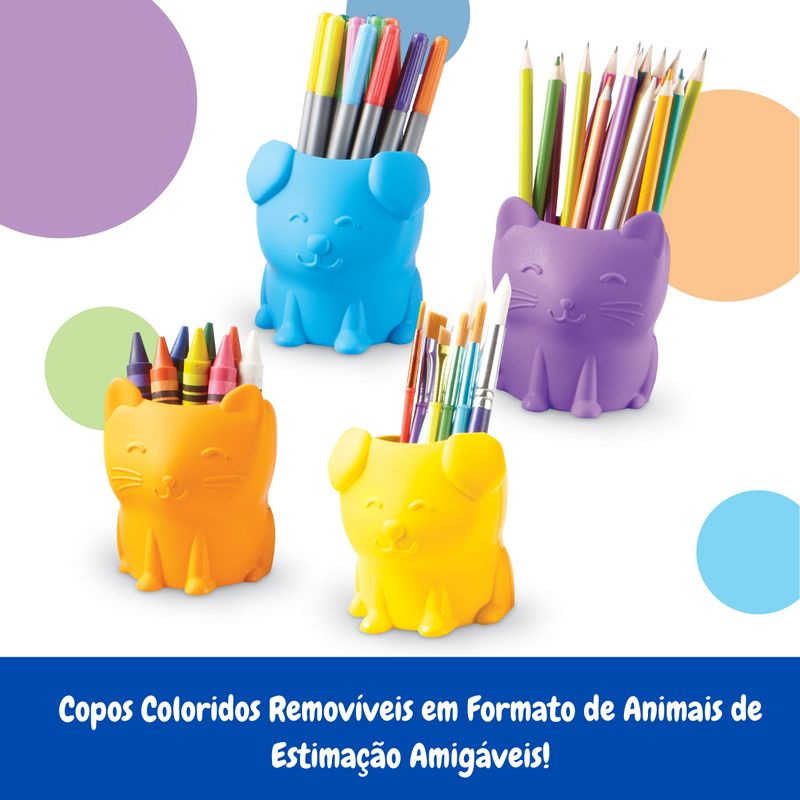 Tema divertido de animais de estimação: Os copos de armazenamento são decorados com rostos simpáticos de cachorrinhos e gatinhos, tornando a organização uma experiência agradável e envolvente.
