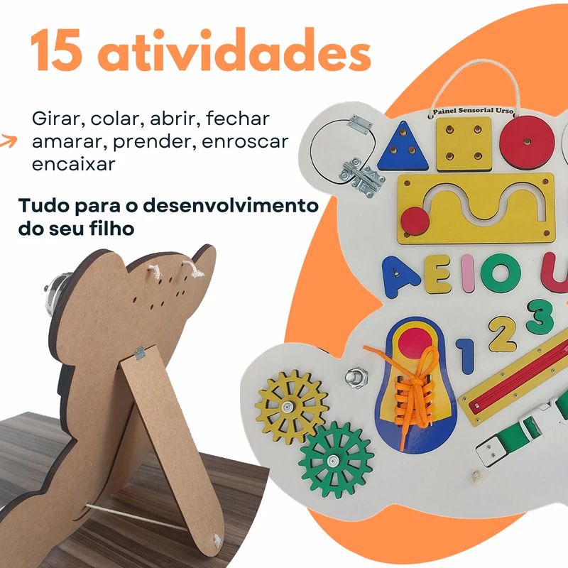 Ideal para crianças autistas e aquelas que se beneficiam de brinquedos sensoriais, nosso painel é um destaque no método pedagógico Montessori.