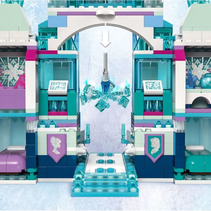 • Palácio Frozen da Disney – Este brinquedo Disney Frozen montável apresenta um palácio de gelo de 3 níveis com uma torre, minibonecas LEGO Disney Elsa, Anna e Kristoff e um boneco de neve Olaf