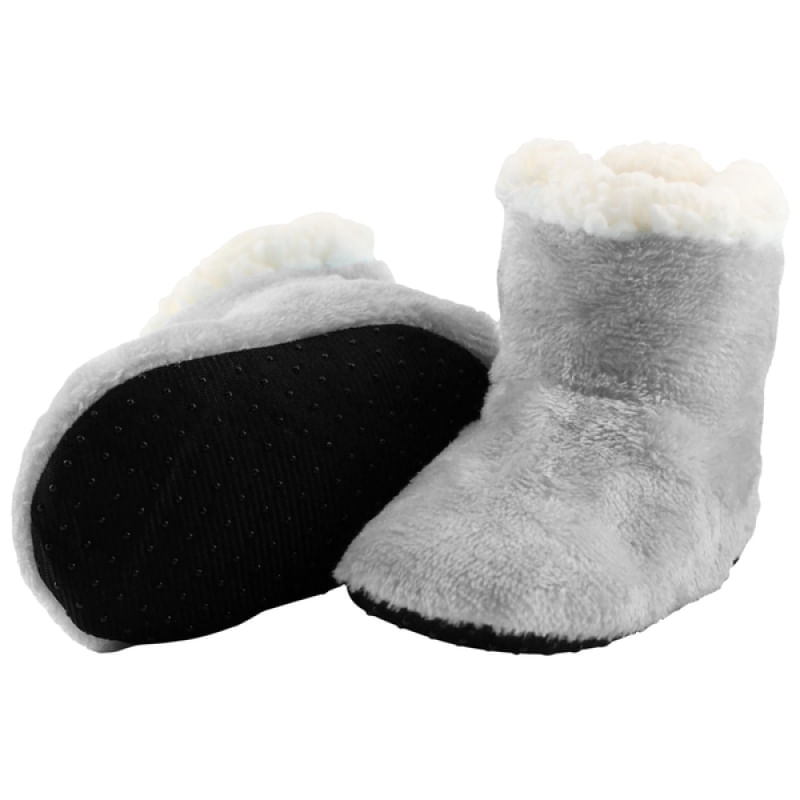 Pantufa Infantil Bebe Cinza Peluciada com Velcro -