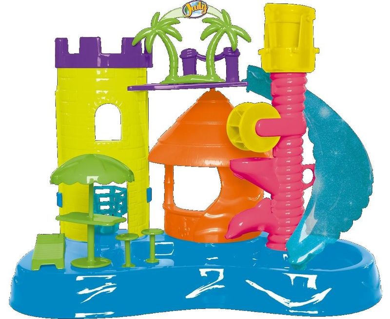 O Parque Aquático da Judy, acompanha uma linda boneca Judy, um escorregador, uma cabana, um chafariz de golfinho, um elevador e muitos acessórios, como balde, onde pode colocar água, para deixar a brincadeira ainda mais divertida! Após subir de elevador, ela passa por uma ponte, onde contém lindos coqueiros, e assim pode descer num super escorregador para chegar até a piscina. Depois da brincadeira, pode aproveitar para fazer um lanchinho na cabana do Parque. Por fim, tomar um sol na espreguiçadeira na beira da piscina. Você vai se divertir muito nessa nova aventura com sua amiguinha Judy!