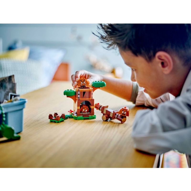 Brincadeira de faz de conta e muito mais no LEGO Super Mario Goombas' Playground com este divertido conjunto de brinquedos de aventura para crianças (71433). Um brinquedo Super Mario legal para meninos, meninas e fãs da Nintendo com 7 anos ou mais. Este colecionável Super Mario apresenta 3 figuras de brinquedo Goomba, além de um tronco de árvore montável e gangorra para brincadeiras criativas. Pressione a alavanca na parte de trás do tronco de árvore montável para fazer um Goomba aparecer, brinque com os Goombas na gangorra ou empilhe todos os 3 Goombas para fazer uma torre Goomba. Adicione os irmãos Super Mario LEGO Mario e LEGO Luigi ou a figura LEGO Peach (dos conjuntos 71439, 71440 ou 71441 - vendidos separadamente) a este brinquedo de videogame para um desafio interativo de equilíbrio de gangorra. Encontre instruções de construção para este conjunto na caixa ou no aplicativo LEGO Super Mario. O aplicativo também oferece ideias criativas sobre maneiras de construir e brincar e é uma plataforma segura para as crianças compartilharem suas criações. Contém 173 peças.