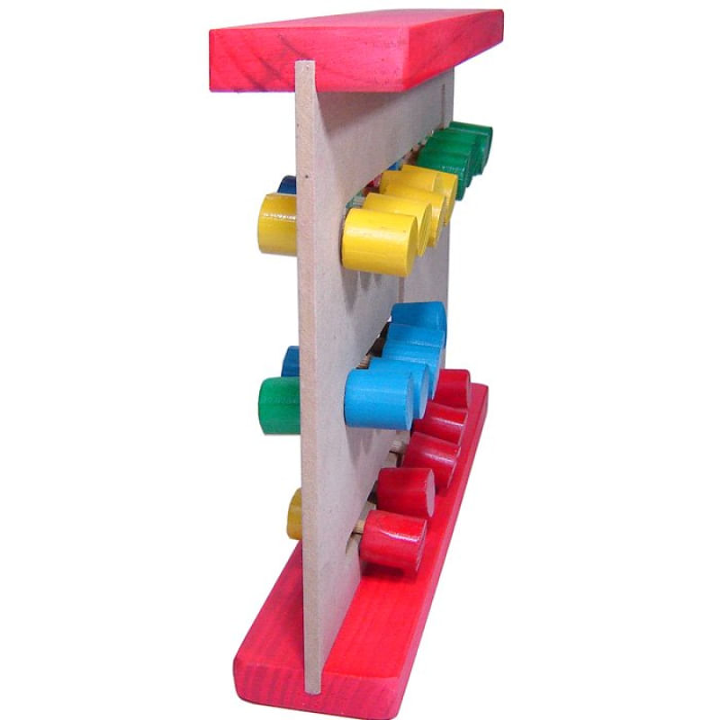 Brinquedo de madeira resistente e reflorestada, com cores fortes.