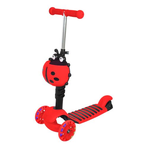 Patinete joaninha vermelho 2 em 1, pode ser usado como carrinho de passeio ou patinete! Ele contém luz nas rodas e tem assento removível e ajustável, dando mais conforto à criança.