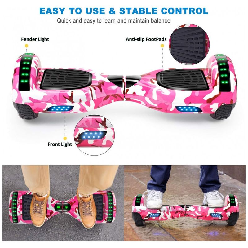 O Patinete Elétrico Auto Balanceante FLYINGANT 6,5" na vibrante cor Vermelho A03 Camo Pink é a combinação ideal de tecnologia, estilo e segurança, projetado para proporcionar uma experiência de mobilidade divertida e acessível. Equipado com motores Dual Hub, iluminação LED futurística nas rodas, frente e traseira, e alto-falante integrado, permite que você se desloque com ritmo e segurança, ouvindo suas músicas favoritas diretamente do patinete. Com certificação UL2272, cada detalhe foi desenvolvido para oferecer proteção completa e estabilidade aprimorada, tornando-o perfeito para iniciantes e usuários de todas as idades. Suportando de 20 a 90 kg, com autonomia de 30 a 60 minutos e alcance de até 10 km após 3 a 5 horas de carregamento, este patinete combina performance e diversão em uma estrutura robusta e elegante. Um presente ideal para crianças e adultos que buscam tecnologia de ponta, estilo e segurança em um único produto.
