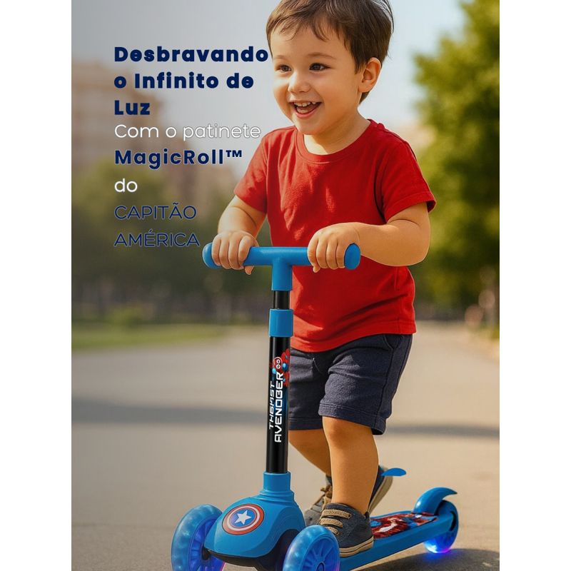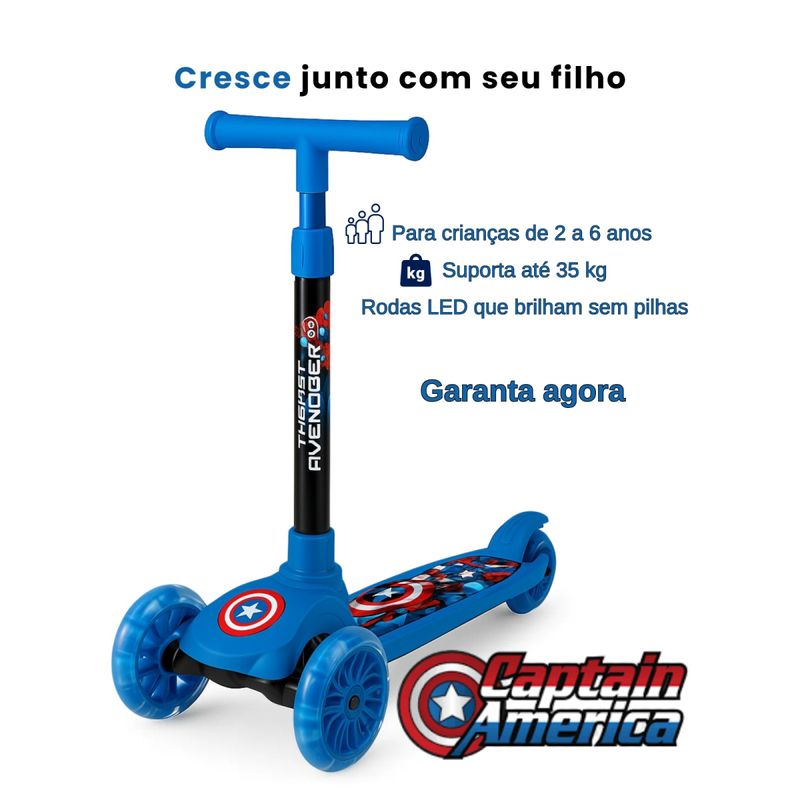 Patinete Infantil 3 Rodas Marvel Avengers - LED, Altura Ajustavel, 3+ Capitao America