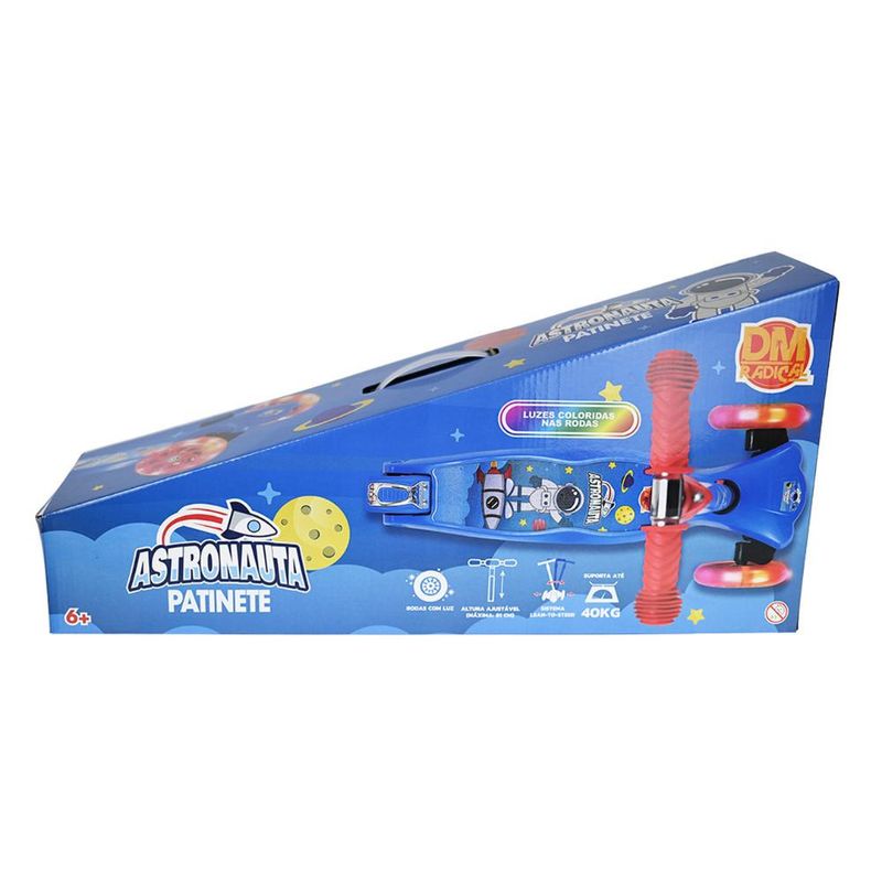 O Patinete Radical Astronauta é super legal. Possui luz nas rodas e duas rodas dianteiras que dão mais facilidade na hora de fazer curvas. Com sistema lean-to-steer, é só inclinar o guidão para o patinete virar. IDADE RECOMENDADA: Acima de 06 (seis) anos CONTEÚDO DA EMBALAGEM: 01 Patinete ESPECIFICAÇÃO: • Ferro, Nylon, Plástico • Rodas em PP+ PU com luz: ? dianteira ? 120 mm (diâmetro) ? traseira ? 80 mm (diâmetro) OUTRAS INFORMAÇÕES: Tamanho: 56 cm x 25 cm x 81 cm Altura ajustável até 81 cm Peso máximo suportado : até 40 kg REGISTRO INMETRO: 003 775/2022