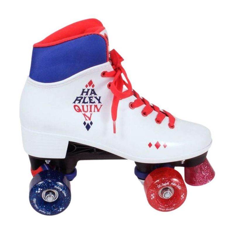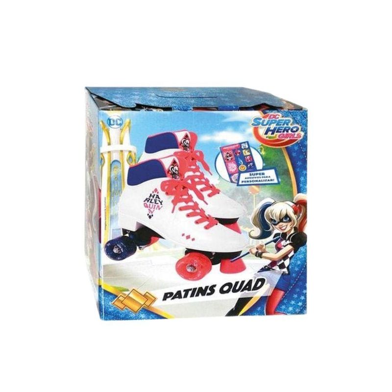 Patins Harley Quinn Super Hero Girls - Bel FixPatins Harley Quinn Super Hero Girls - Bel FixInformações do Produto: Os patins mulher harley quinn super hero é ideal para a patinação em superfícies lisas e cimentadas, onde você poderá treinar incríveis manobras. Com as rodas cheias de glitter ninguém vai segurar seu brilho. O modelo possui freios frontais que auxiliam nas paradas e a bota com forro levemente acolchoado é a certeza de que o bem estar e o conforto estarão sempre com você. Aproveite seus patins em atividades físicas com muito estilo e liberdade, libere a heroína que existe dentro de você. Rolamentos 608z.Itens inclusos: 1 par de patins, 1 cartela de adesivos.Dimensões aproximadas do produto: AxLxC 20 cm x 8,5 cm x 20 cm.Recomendado: Não recomendado para crianças menores de 3 anos.Alimentação: Não Necessita.Material composição: Pvc, polipropileno.Certificação: CE-BRI/INNAC-00439-01ª NM 300/2002. Ocp 0061.Garantia do Fabricante: 03 meses contra defeitos de fabricação.Aviso: Todas as informações divulgadas são de responsabilidade exclusiva do fabricante/fornecedor. As cores dos tecidos ou dos produtos podem variar entre as imagens mostradas acima ou fotos da embalagem. Imagens meramente ilustrativas.